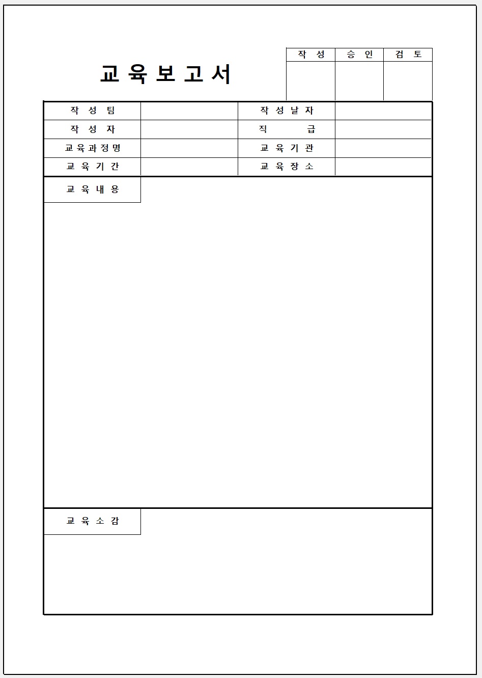 교육보고서 양식을 아래와 같이 등록하오니 필요하신 분께서는 다운로드하여 사용하시면 됩니다.