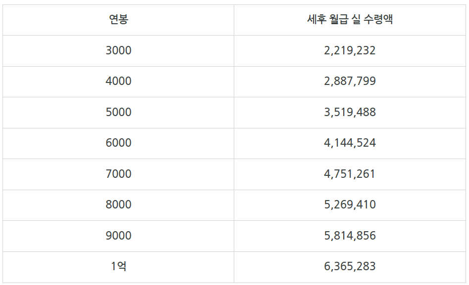 2. 연봉실수령액